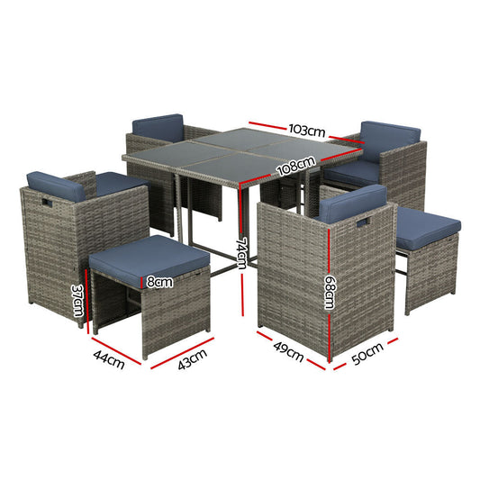 Grove - Outdoor Dining Set 9 Piece Wicker Table Chairs Grey